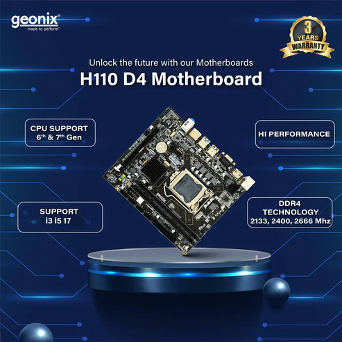 Build a powerful and reliable system with the Geonix GX-H110 D4 LGA 1151 DDR4 Motherboard, designed to deliver smooth performance, excellent stability, and future-ready features. Compatible with Intel 6th and 7th Gen Core i3, i5, and i7 processors, this motherboard is perfect for building efficient workstations, gaming PCs, or everyday desktops.
