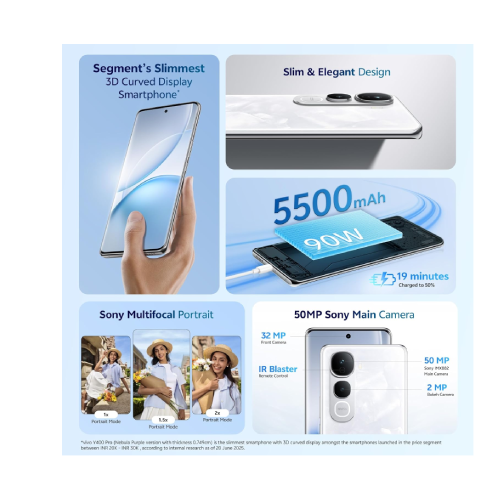 Vivo Y400 Pro 5G (Freestyle White, 8GB RAM, 128GB Storage) with No Cost EMI/Additional Exchange Offers